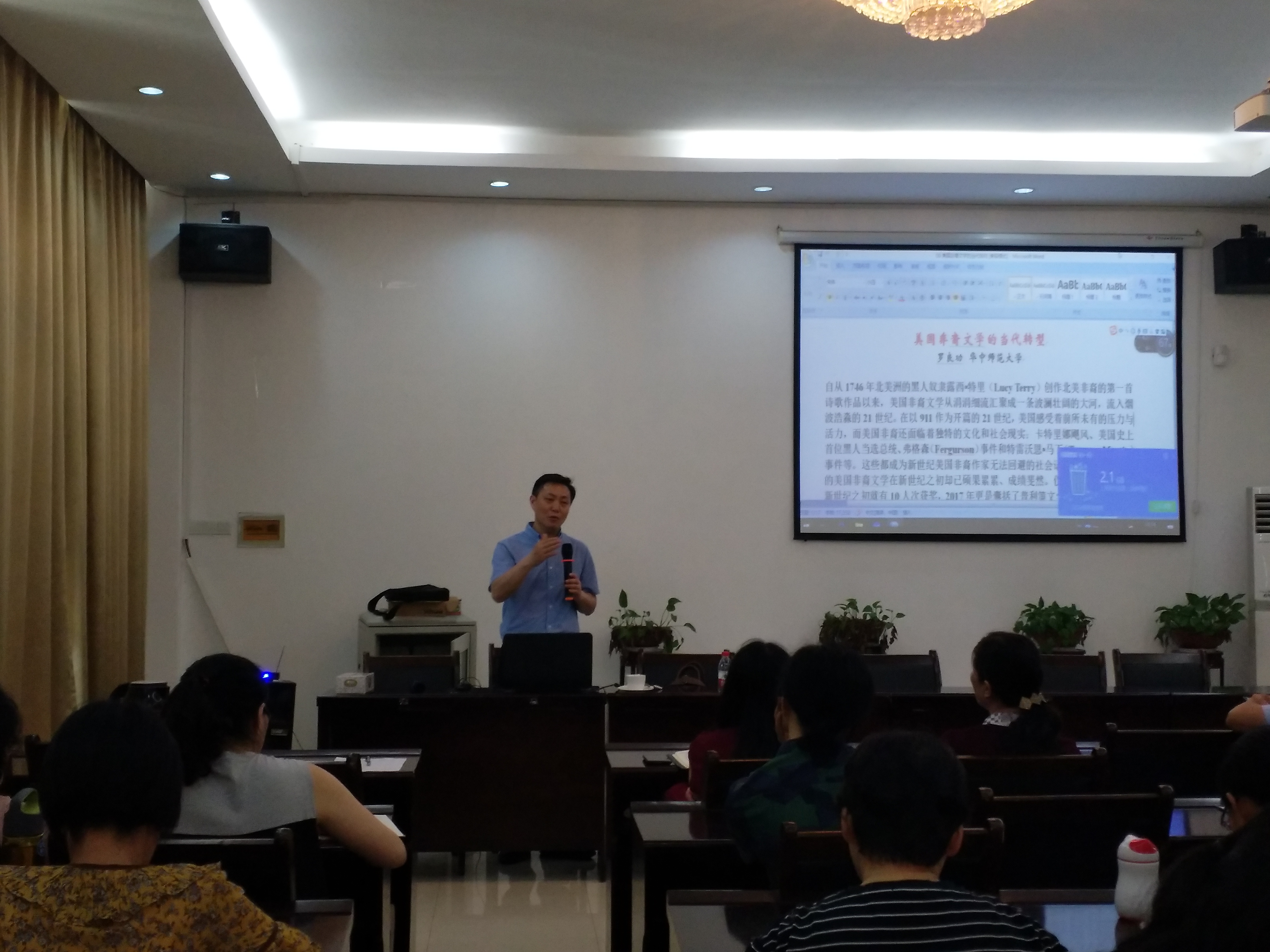 , 做主题为“美国非裔文学的当代转型”的讲座,讲座由副院长袁平华教授主持,a漫