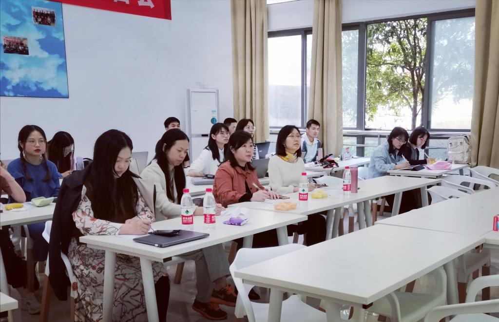 104教室召开,18名20级MTI专业学生参加此次沙龙暨选拔赛,本次沙龙邀请到陆秀英、肖群、刘庆雪、樊梦等导师到现场观摩指导。