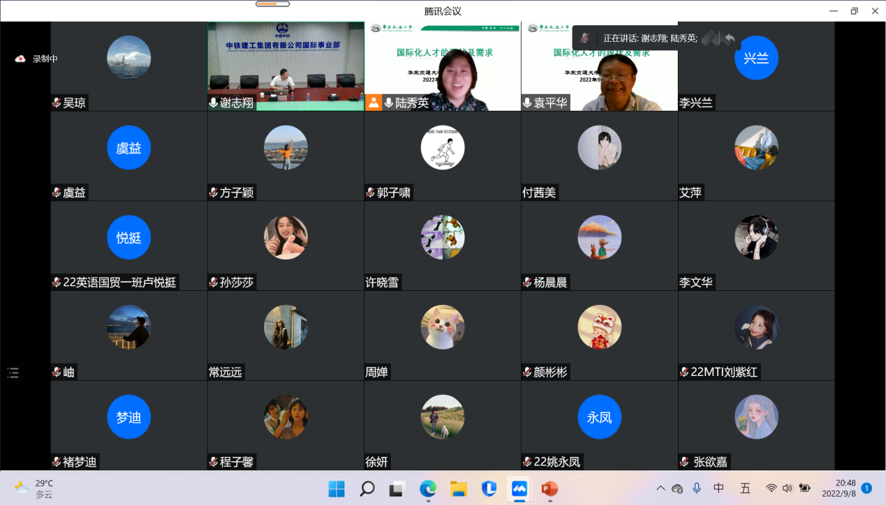邀请在线为学院师生带来一场题为“国际化人才的现状及需求”的线上学术讲座。讲座由学院副院长(负责学院行政工作)袁平华教授主持,并由副院长陆秀英教授总结。