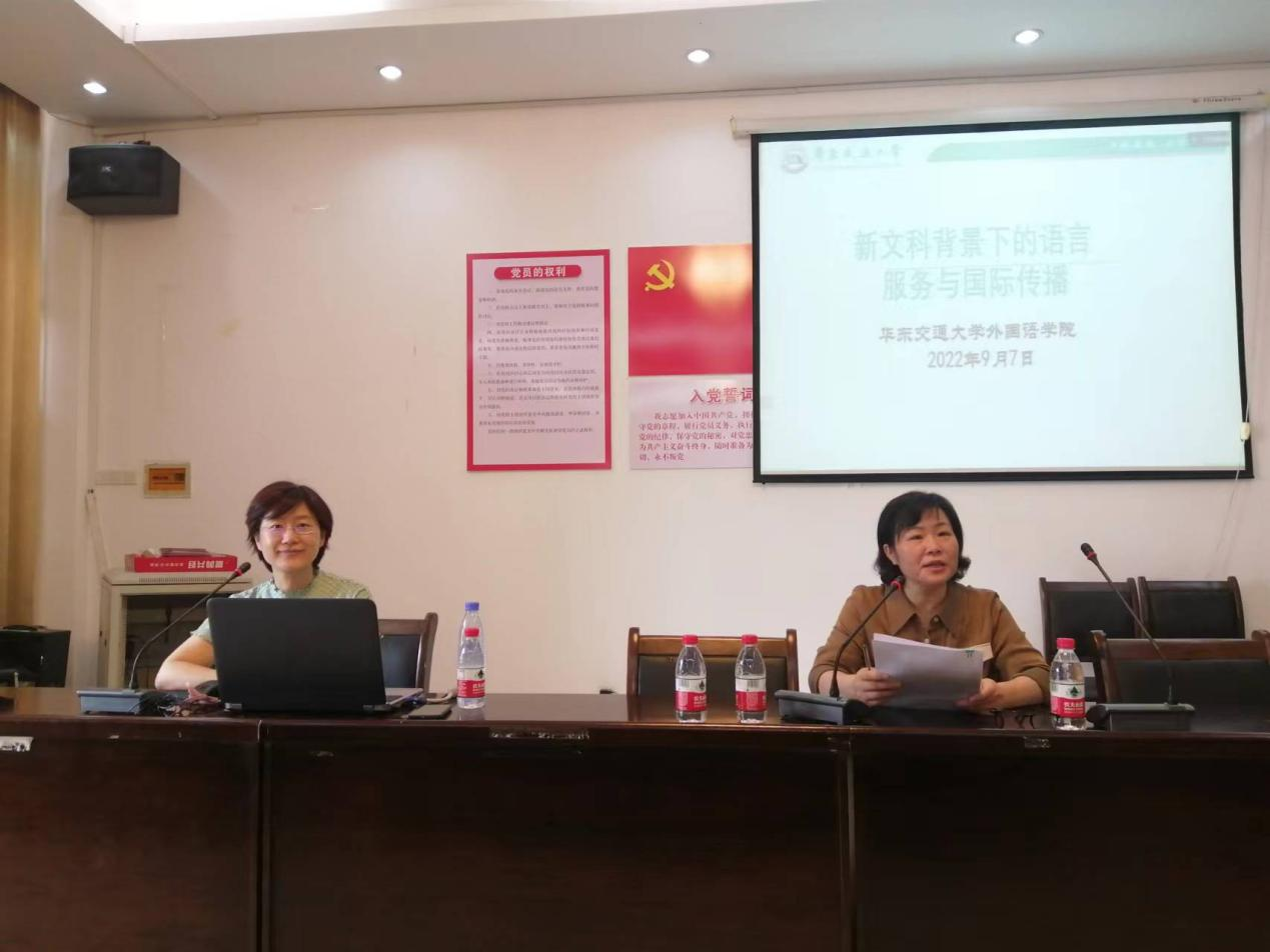 师生在15栋102会议室带来一场题目为“新文科背景下的语言服务与国际传播”的学术讲座。本次讲座线下线上同步进行,由a漫