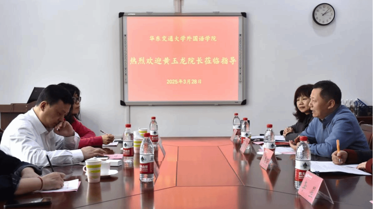 黄玉龙院长对我校的成就给予肯定,并结合自身工作经历,指出了外语在我国走向海外过程中的重要作用。他表示,新时代外语人的关键任务是讲好中国故事。在讲述中国故事的同时,贯彻习近平新时代中国特色社会主义思想,同时活学活用,结合我校的交通特色,采用“交通+文化”的特色教学方式,使教学更加鲜活生动。