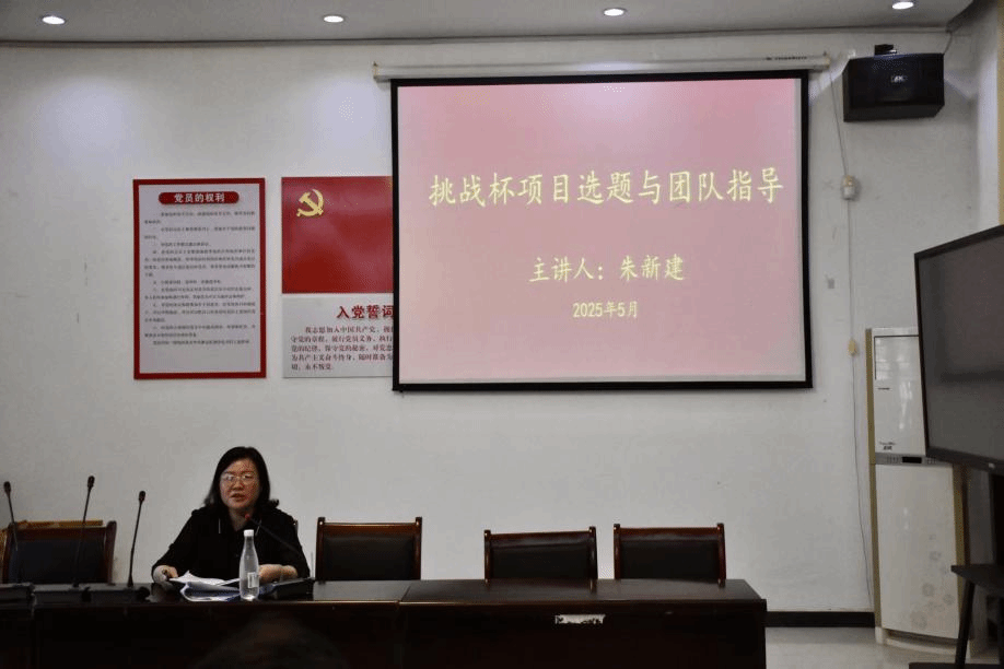 会议伊始,院长陆秀英指出,“三大赛”是高校科研创新的领航赛事,是培养学生科研与创新能力的重要平台,本次特邀嘉宾朱新建院长是挑战杯赛事的“金牌导师”,2021-2025年期间,他带领团队在挑战杯赛事中多次斩获国奖和省级特等奖。