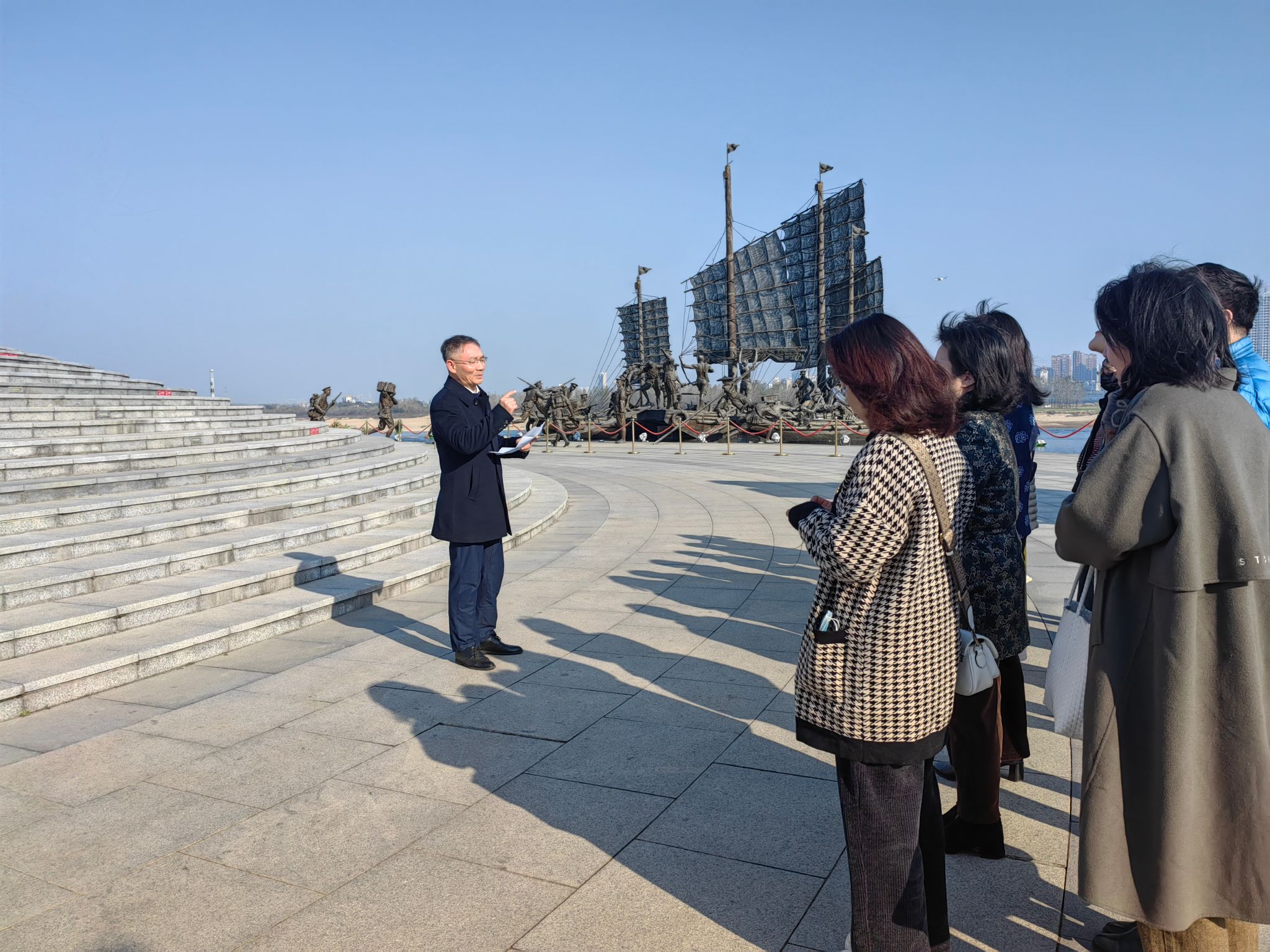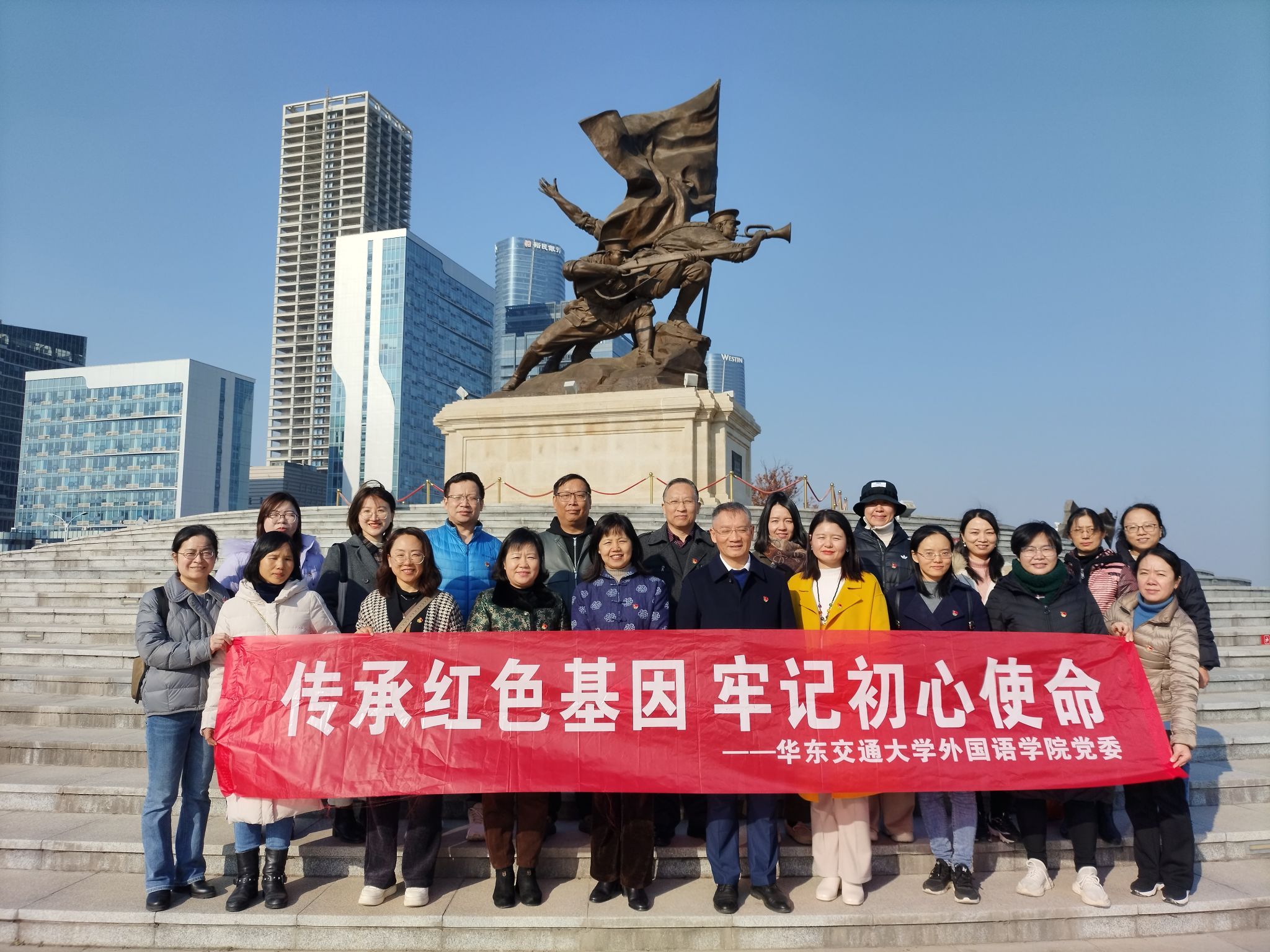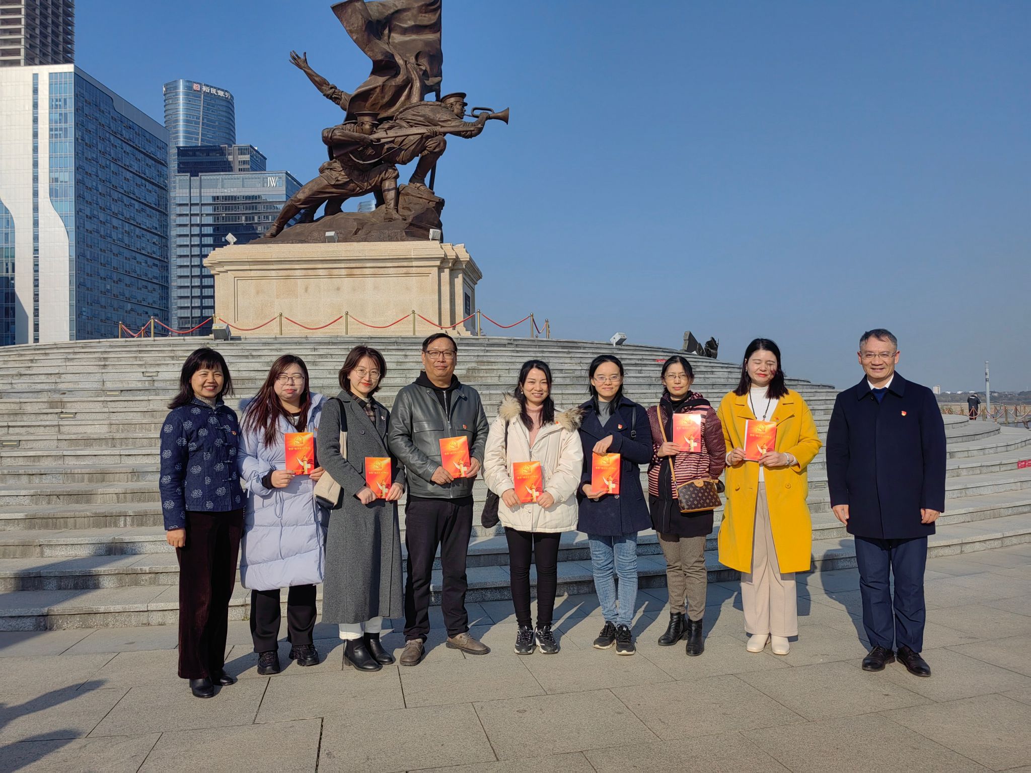 翻译教工党支部与英语教工党支部于2023年11月24日下午在南昌红谷滩建军雕塑广场开展支部间联合共建,举行“奋力谱写中国式现代化江西篇章”专题红色走读活动。院党委书记刘朝武、党委委员单伟红、党委委员陆秀英出席并参加活动。