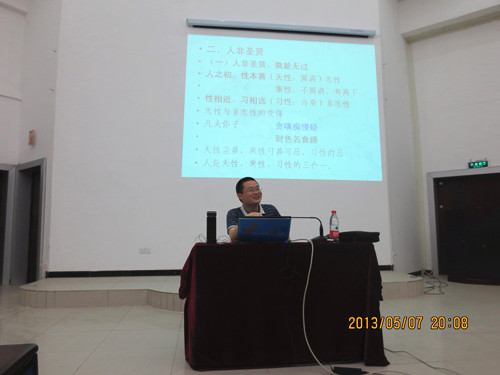 讲课伊始,石老师由党章的三大优良作风引出此次党课的话题——批评与自我批评,并论述了批评的重要性。课程前半部分,石初军老师主要围绕“人非圣 贤”,融合中国传统佛道儒文化,深入展开剖析人的“贪嗔痴慢疑,财色名食睡”,结合自己的亲身经历,教导大家淡泊名利,勤奋踏实,强调“谦虚是人的唯一出 路”。紧接着,石老师引经据典,旁征博引,讲解了接受批评,批评他人和自我批评。其幽默风趣的谈吐不时博得同学们的阵阵喝彩!