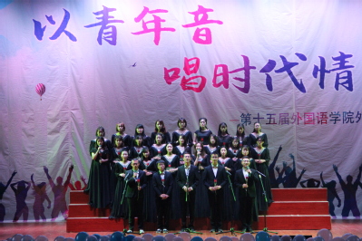 第十五届外文大合唱于南区礼堂隆重举行。交通运输与管理学院副院长管淑红、艺术学院教师熊友军、a漫