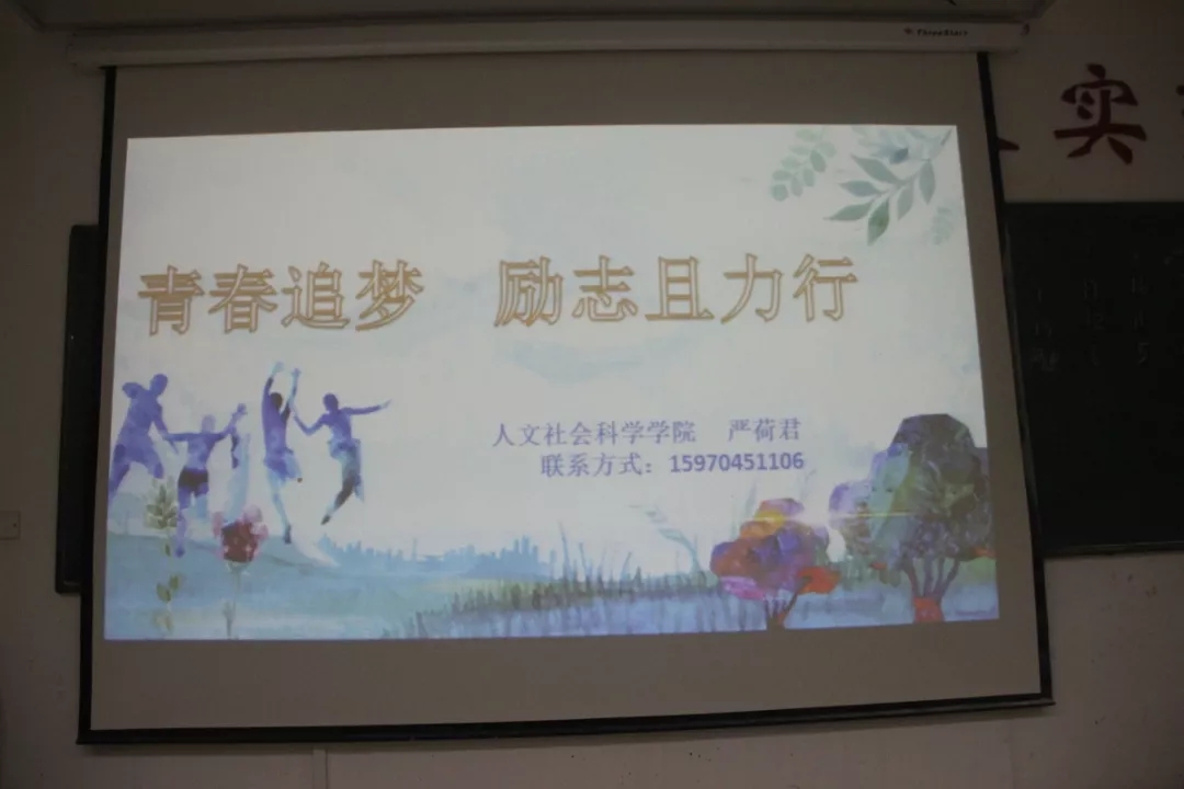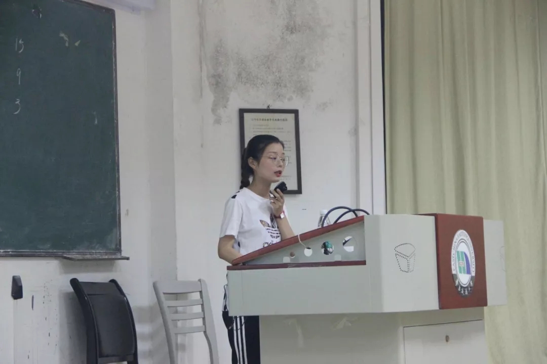 随后,严荷君老师以提问的方式引出主题。“梦想是什么?青春是什么?”对大家而言,这是一个老套到不能再老套的鸡汤式问题,可严老师却做出了不同的解答。她说,“梦想”的“梦”之下,是“夕”,代表大家在思考梦想的时候都是忙碌了一个白天,晚上夜深人静的时候开始思考,思考那些为了忙碌而忙碌的迷茫;“青春”之下是“日月”,代表昼夜更迭,就像一代又一代的青年接力传递,让国家越来越强。“家是最小国,而国是千万家”,明确自己的责任,履行自己的义务,才是每一位中国青年应该做的事。