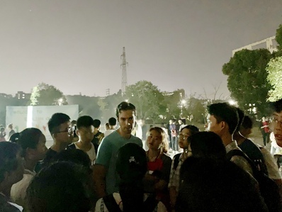 18级国贸一班主办的英语角活动在外院小广场顺利举行。Amine,LaQuete,Drew三位外教应邀参加。