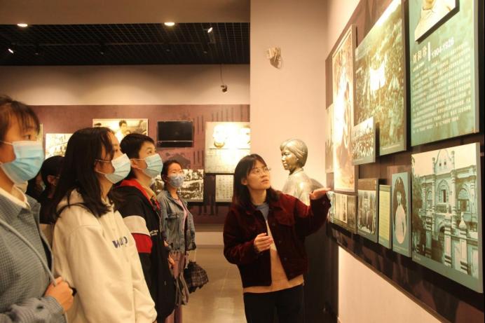 “我志愿加入中国共产主义青年团,坚决拥护中国共产党的领导……”在纪念馆烈士浮雕前,同学们在英语(国贸)2020-1团支书徐莫文带领下重温入团誓词,铿锵有力的声音中,展现着当代青年大学生的时代风貌;紧接着,葡萄牙语2020-1团支书杨恒贝带领同学们重读《纪念刘和珍君》,向革命烈士表达深切怀念和由衷的敬意;随后,徐蒙蒙老师向同学们详细介绍了江西革命烈士纪念馆的历史和革命先烈的英雄事迹,希望同学们能从中,汲取精神动力,发扬红色传统,赓续共产党人的精神血脉;最后,大家在馆内参观学习,青年学子们边走、边看、边听,从一件件展品中研读它们身后可歌可泣的故事,感受革命先辈的一腔热血。
