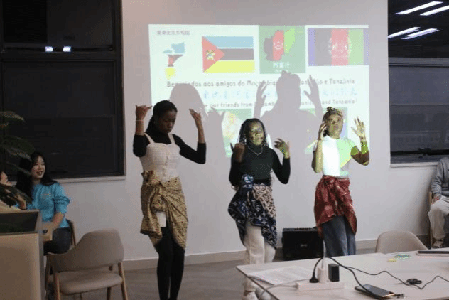 活动伊始,来自莫桑比克的留学生们化身文化传播使者,生动地介绍了自己国家的风土人情,仿佛一幅幅绚丽画卷在众人眼前徐徐展开。他们不仅带来了承载民族情感的传统服饰capulana,还伴随着欢快而有节奏感的莫桑比克民族音乐,跳起别具特色的marrabenta舞蹈,让人仿佛置身于莫桑比克的欢乐庆典。并通过分享本国美食向大家传递了莫桑比克人民对生活的热爱。莫桑比克传统小游戏matokozhana更让现场气氛到达高潮,大家席地而坐,欢声笑语回荡在活动现场,彼此的心在合作与欢乐中愈发贴近。