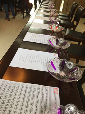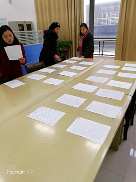 3月8日下午,学院教师代表首先对女教工的三十多件外文书法作品进行了初审,从有英文、法文、西班牙文等作品中选择了12件精品,随后全体老师对12件作品进行了投票,最终按照得票数确定了作品的排名。