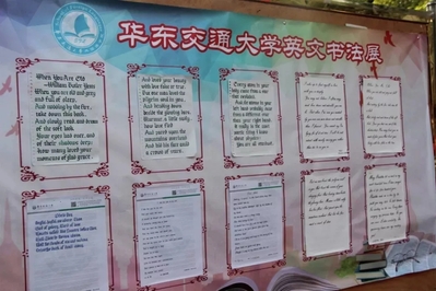 在“红五月”的活动现场,本届“双基”英文书法大赛的优秀作品也一一展出,一幅幅精美的英文书法作品,展示了我校学子良好的学习态度和精神风貌,英文书法大赛也促进了我校学子学习外语的热情和兴趣。
