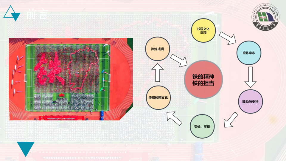 的校本精神、校史、校园文化、榜样人物、优秀校友、学科特色等用生动英语解说我校的校本文化和精神。