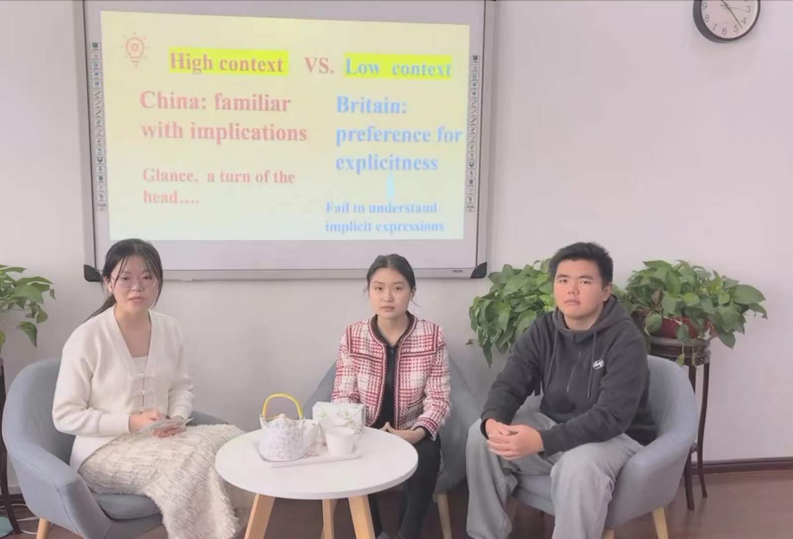 该团队从“多元文化生活”入手,以电视访谈为表演形式,将中英教育差异的案例和跨文化交际理论分析巧妙地融合在一起,邓可欣和程也芝同学在案例展示后出色地完成了6分钟的回答问题。三位参赛选手表现出的跨文化理论与实践、国际视野、思辨能力和英语语言表达能力等多方面的超群综合实力,充分展现了交大学子的跨文化交际风采。