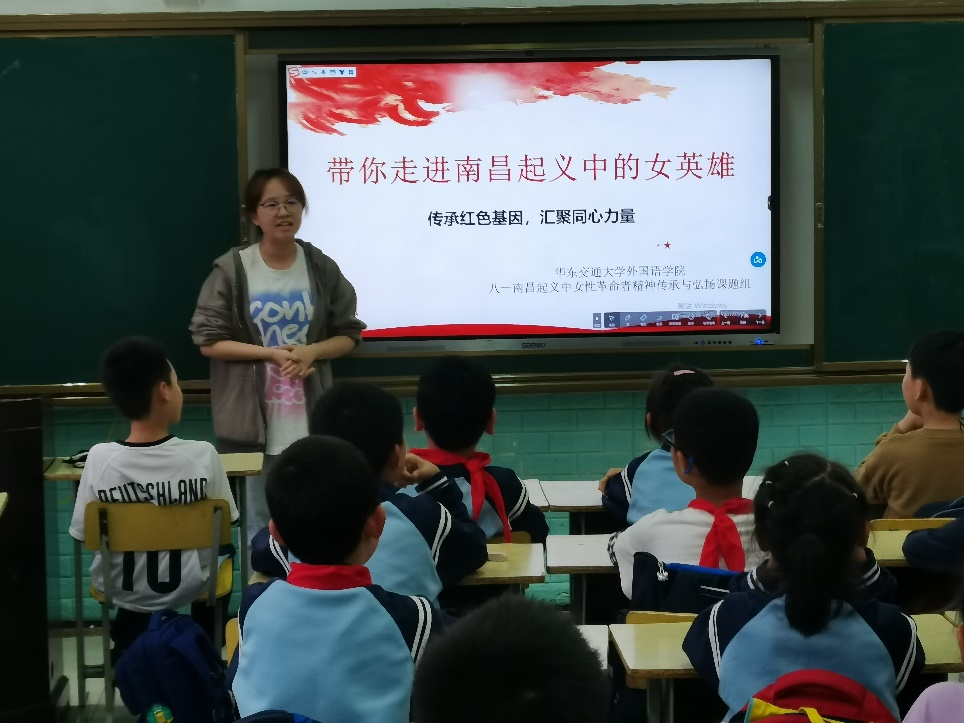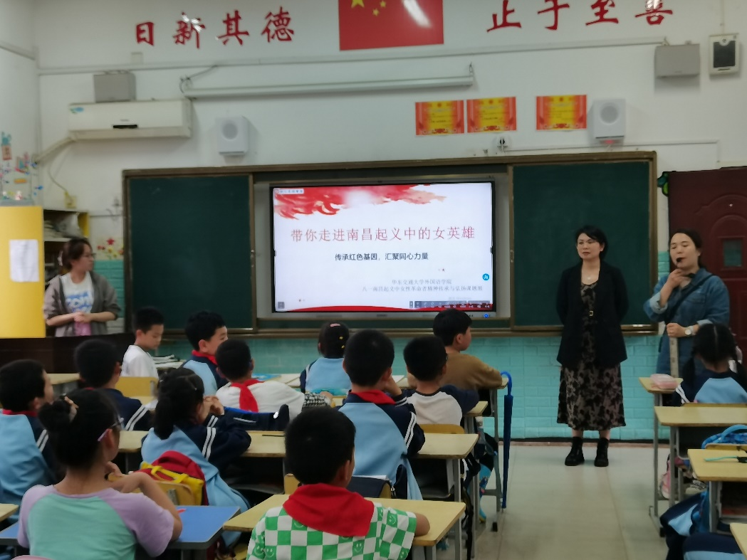 “八一南昌起义中女性革命精神传承与弘扬”学生课题组,在马克思主义学院易修正老师的指导下,走入附属小学进行红色文化宣传,带领小朋友们认识南昌起义中的女性革命者,开展了一堂精彩纷呈的德育课。