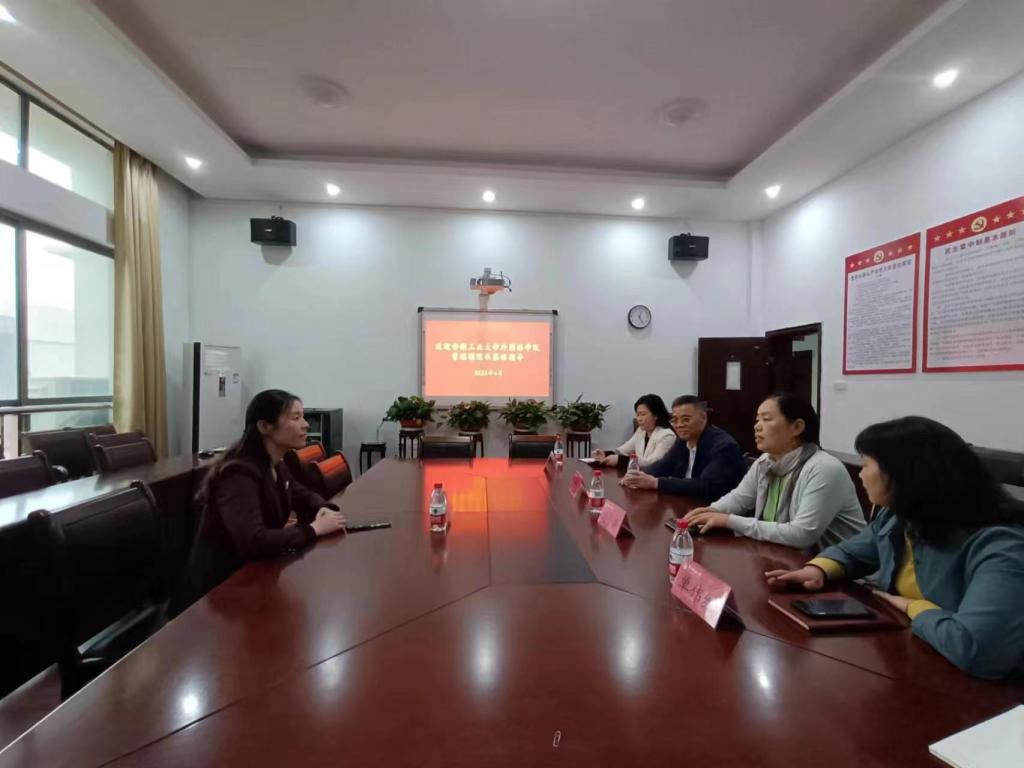 座谈会上,赵小晶对曹瑞斓院长的到来表示热烈欢迎。首先,双方分别介绍了各自学院的历史沿革、师资情况、专业设置及专业发展等情况。然后,双方就外语学科发展、课程设置、存在困境以及人才引进等共同关心的话题进行了深入交流。双方表示,同为理工类院校举办的外语学院,在办学理念、发展规划等方面有共通之处,今后将加强沟通交流,互学互鉴,共同推进两校外语学科建设,提升人才培养质量。