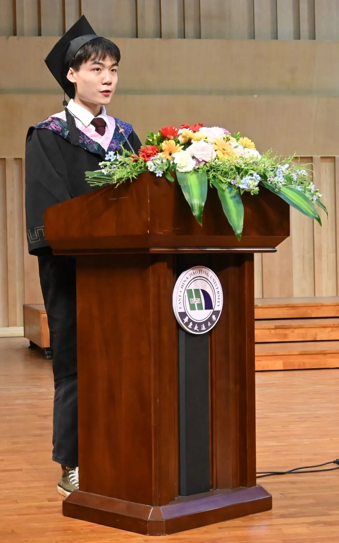 刘一博代表全体本科毕业生向所有老师同学表示最崇高的敬意,并对全体毕业生表达了真挚的祝福。外院院训“兼收并蓄,笃信达雅”在潜移默化中不断给予他不断学习的动力。“我感恩于学院的悉心栽培。希望今后同学们携手共进,为实现自己的梦想和社会的美好未来而努力奋斗吧!”