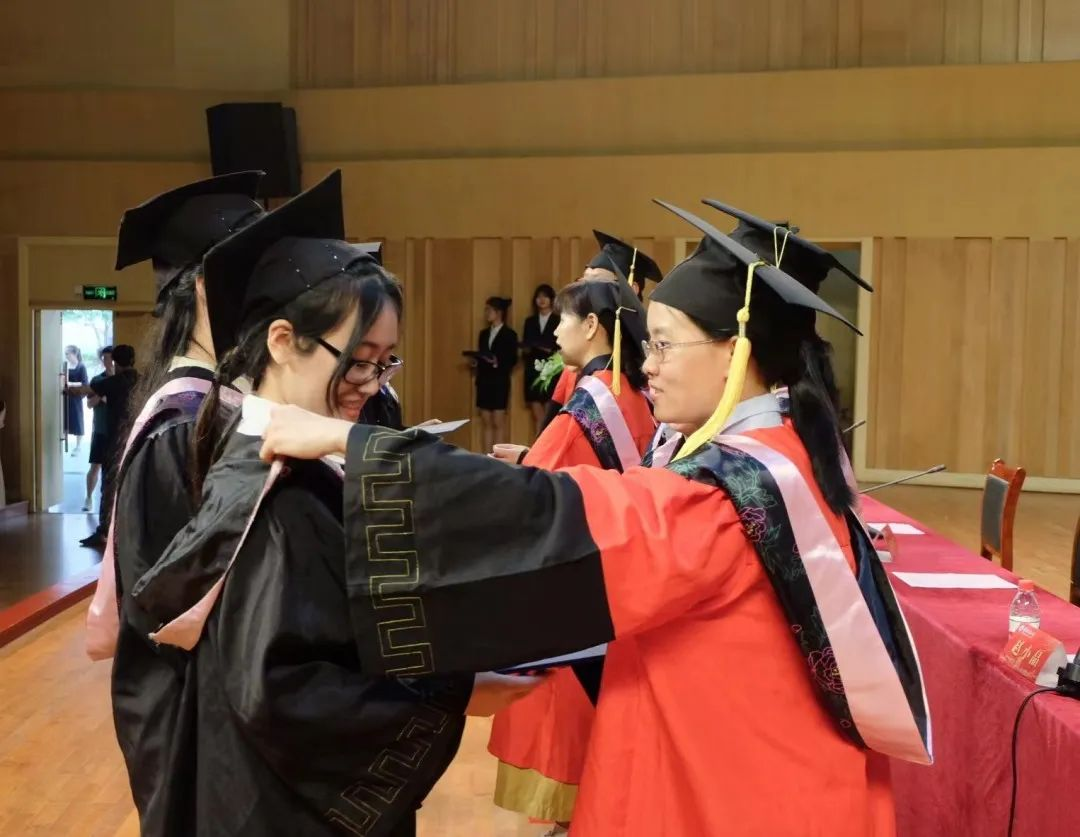 典礼最后,副院长赵小晶毕业生扶正流苏并合影留念。六位研究生导师和七位本科生导师分别为22位研究生毕业生和160位本科毕业生授予学位证书。