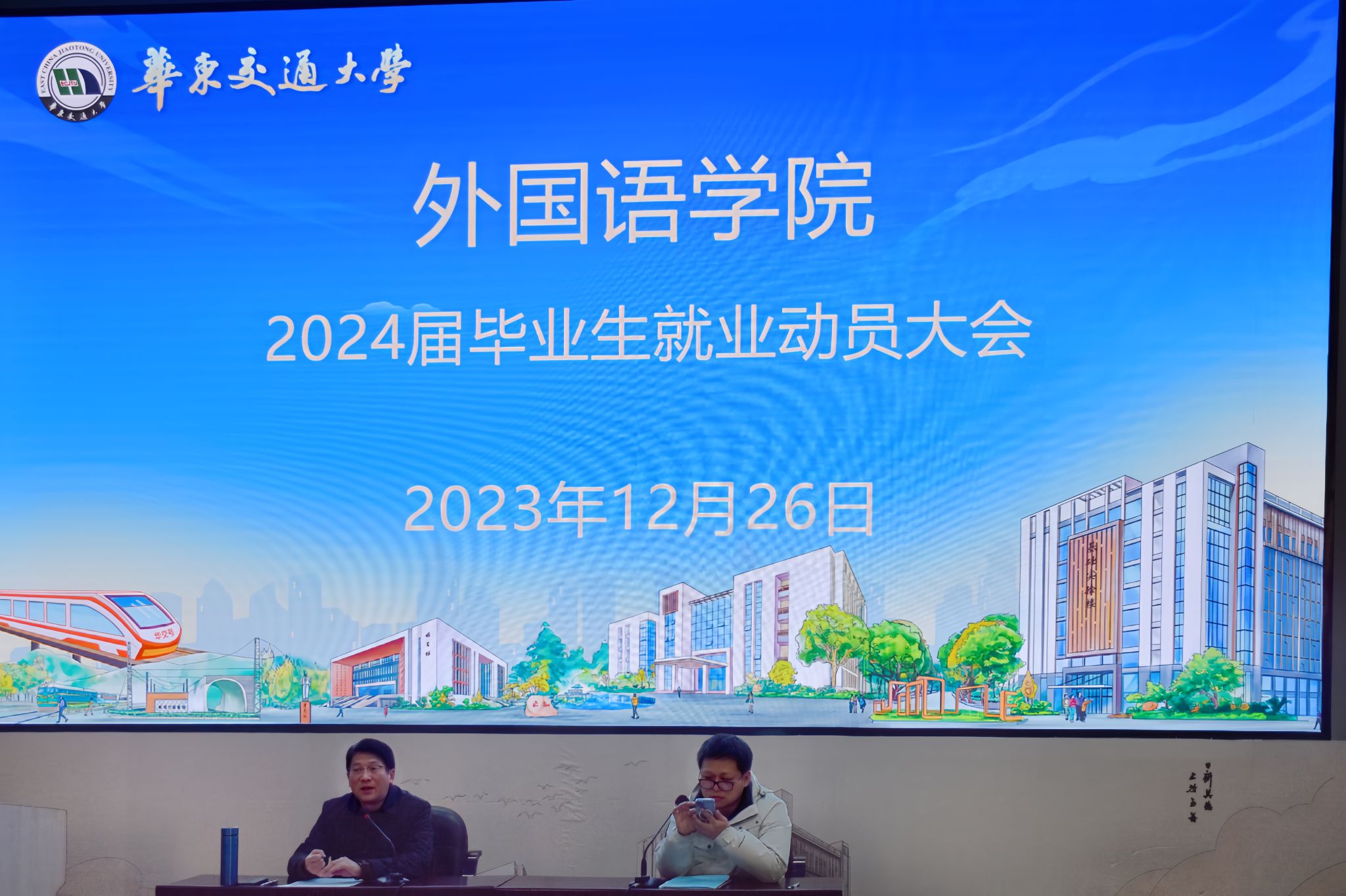 12月26日15:00,外语学院于南区图书馆202报告厅召开2024届本科毕业生实习动员大会暨毕业生就业动员大会。院党委副书记光辉、实习负责老师姜浩、辅导员徐蒙蒙以及全体2024届毕业生出席,大会由徐蒙蒙主持。