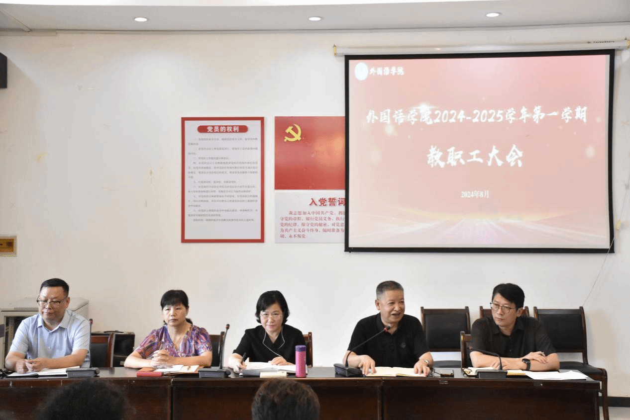 于教15栋102会议室召开了2024-2025学年第一学期教职工大会。党委书记薛先庆、院长陆秀英、副院长单伟红、党委副书记光辉、副院长李星及全体教职工参会。本次会议由党委书记薛先庆主持。