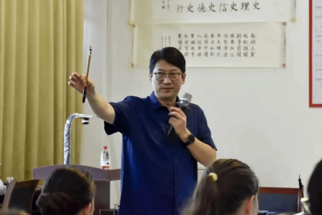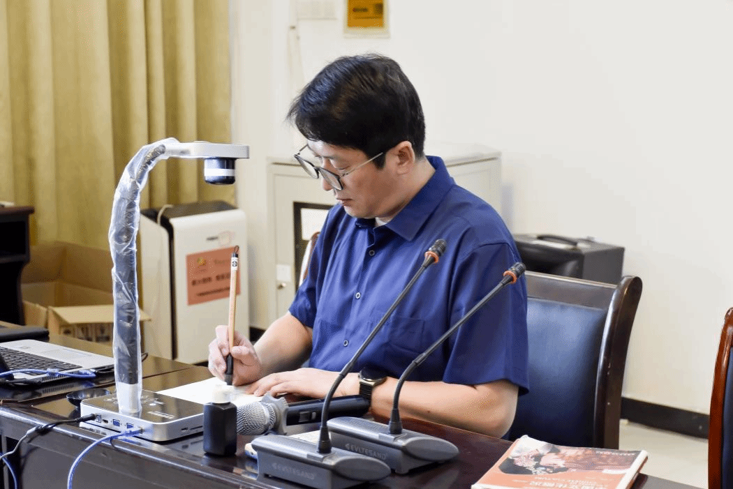 活动伊始,院党委副书记光辉为同学们介绍中国书法艺术的起源和发展。他提到,甲骨文是中国现存最古老的文字,随着文明的演进逐渐发展成楷书、隶书、行书等多种形式,同时列举了王羲之、颜真卿等书法名家,让同学们对中国书法艺术有了基本认识。