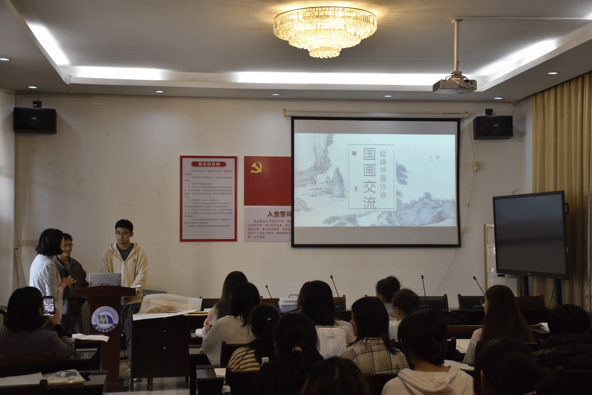 于教15栋102会议室开展中国传统绘画体验课,本次活动由陈蜻蜻老师主持,险峰书画协会徐锐授课,2022级郭昊协助翻译,2022级英西复语专业学生、2024级留学生参加本次活动。