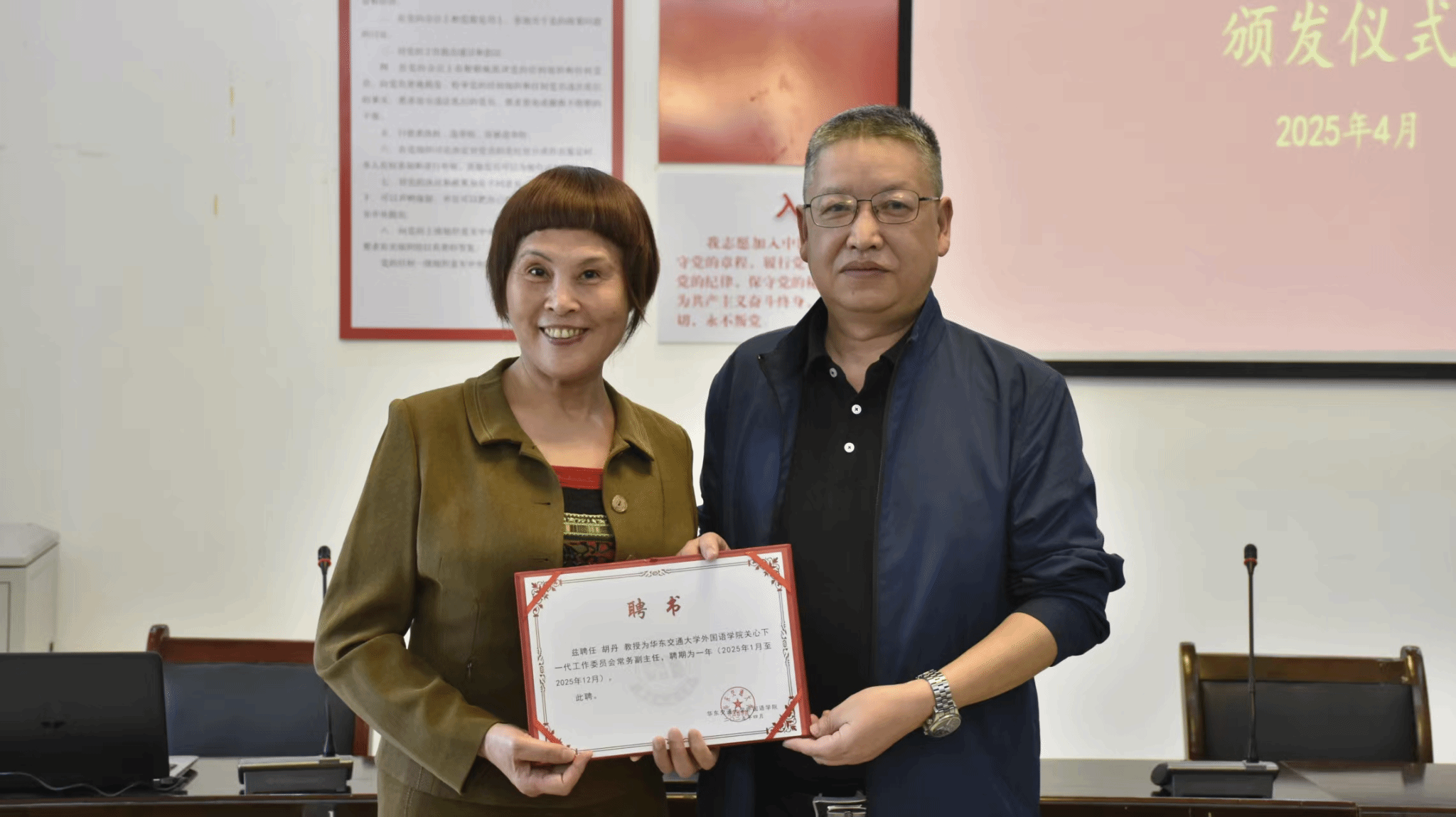 于教15栋102会议室举行关工委常务副主任聘书颁发仪式,为院关工委工作注入新动力。