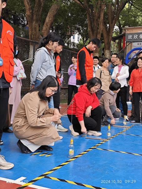 陆秀英和薛先庆到现场给接力赛跑老师们加油